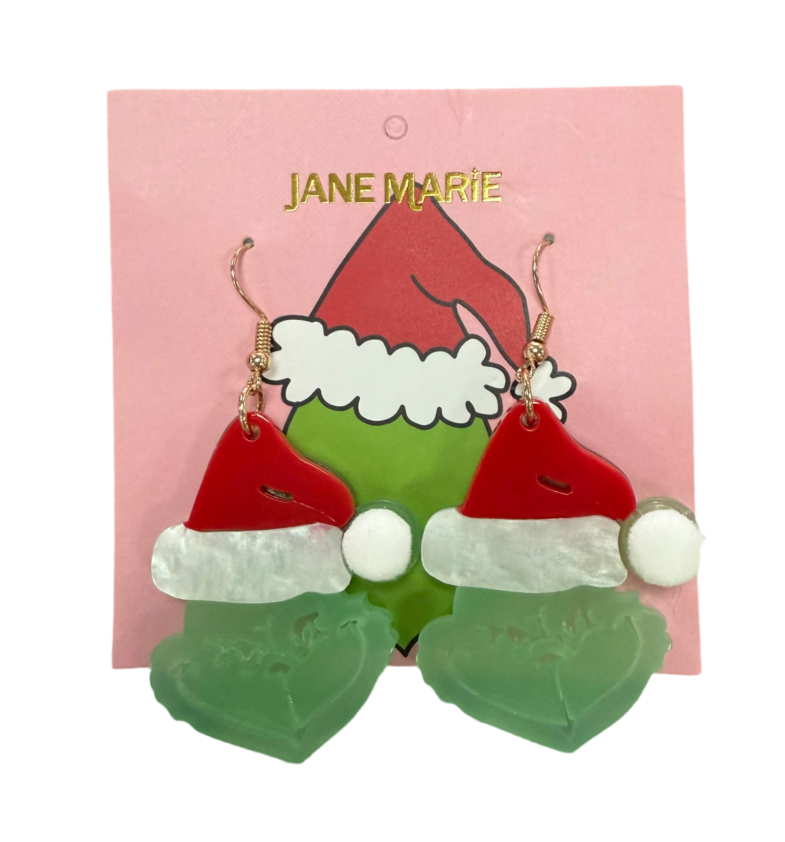 Steal the spotlight (not Christmas) with these adorable Grinch Earrings! Made from green, red, and white acrylic with a fuzzy... Read more