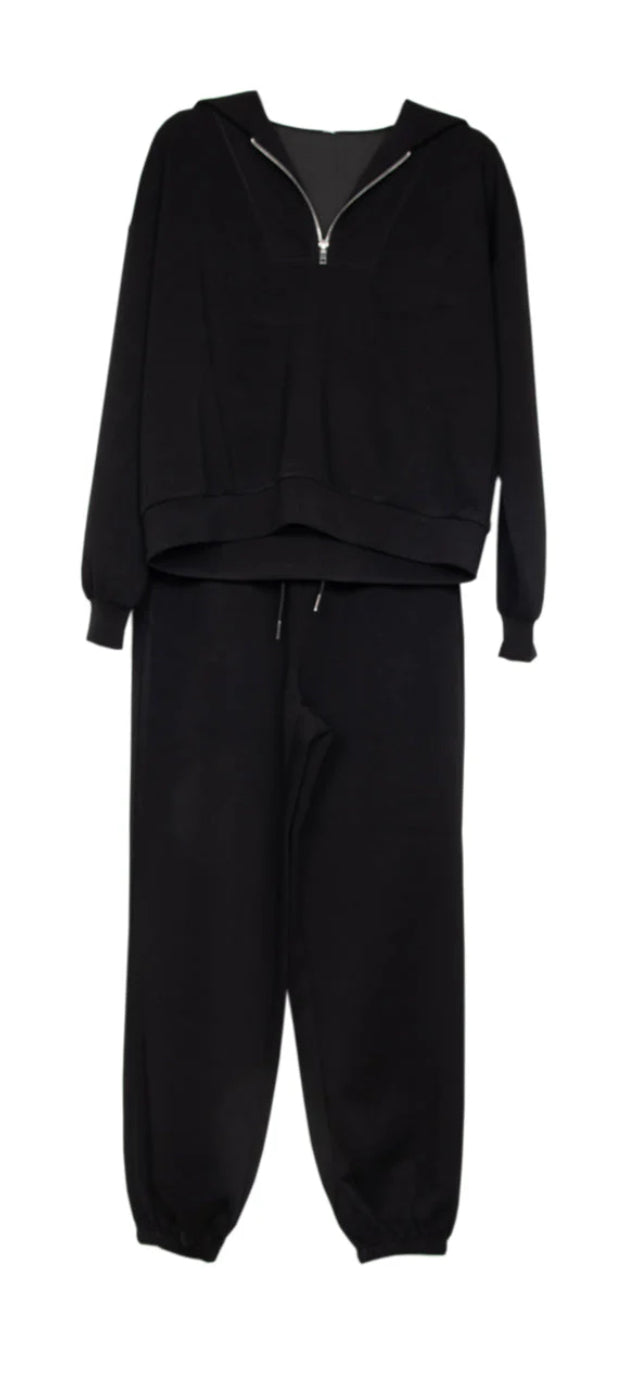 The all-black look makes it sleek enough to dress up with layered necklaces and fresh kicks, or down with slippers and a top knot. Whether you're planning a cozy movie night or heading to the airport, this set is fall's version of a hug in outfit form. Bonus points: you'll look like you have your life together (even if you don't).