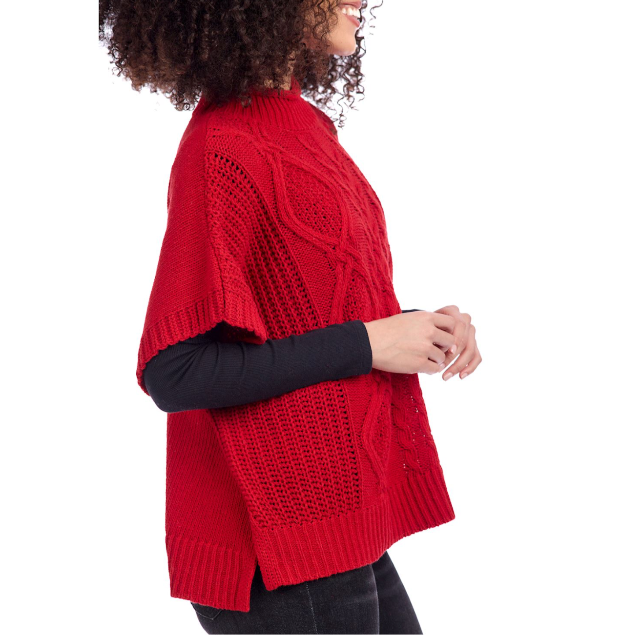 Polyester knit sweater features rolled mock neck, ribbed sleeve openings and side slit hem. One size fits most. Measures approximately... Read more