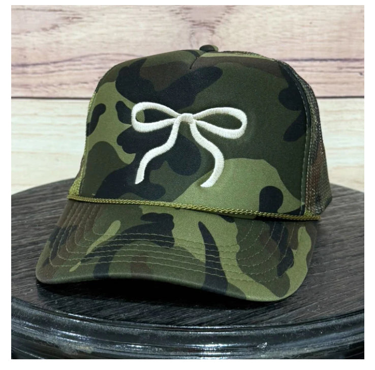 Foam Trucker hat with embroidered cream bow Read more