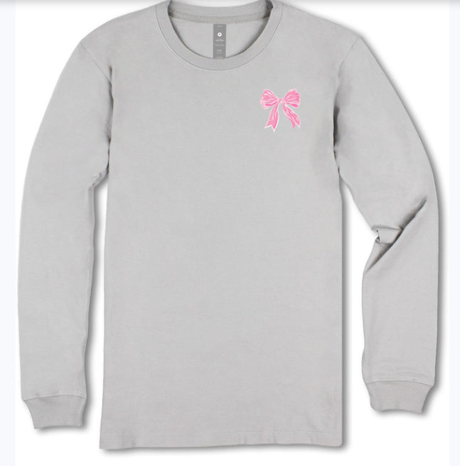 Sport grey long sleeve shirt with the phrase 'Doing my best, Letting God do the rest' adorned with pink bows... Read more