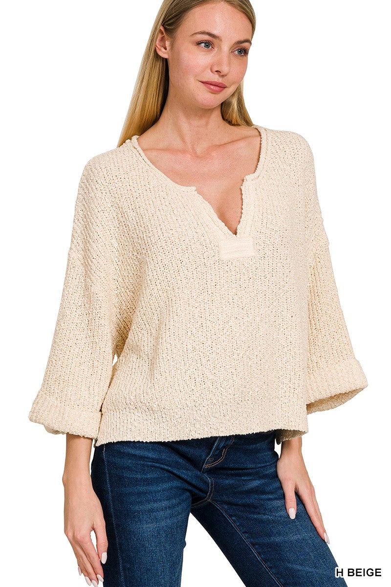 SLIT PATCH FOLDED SLEEVE PULLOVER