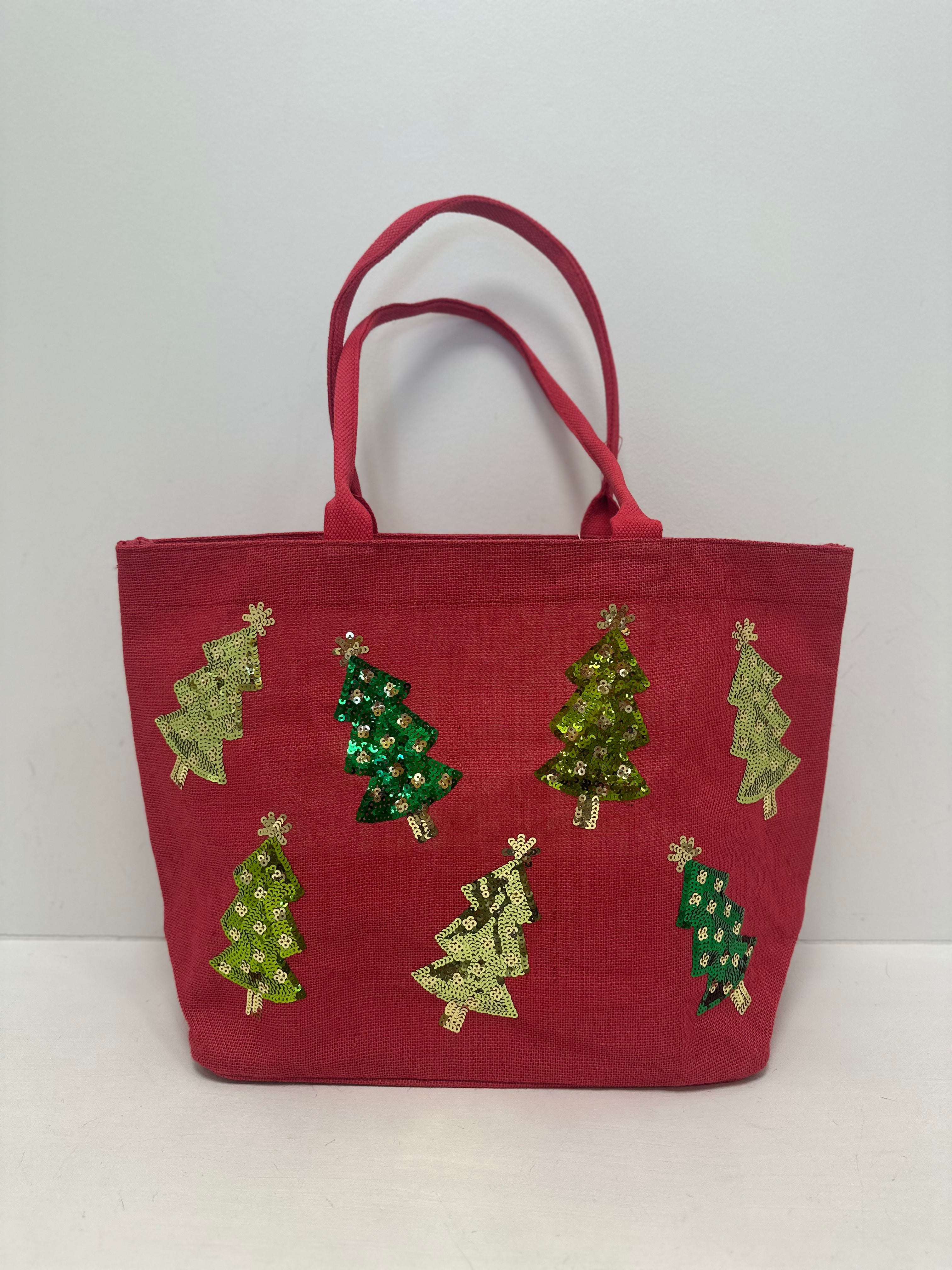 Sequin jute tote features cotton webbing handles and laminated wipe-clean interior. Read more