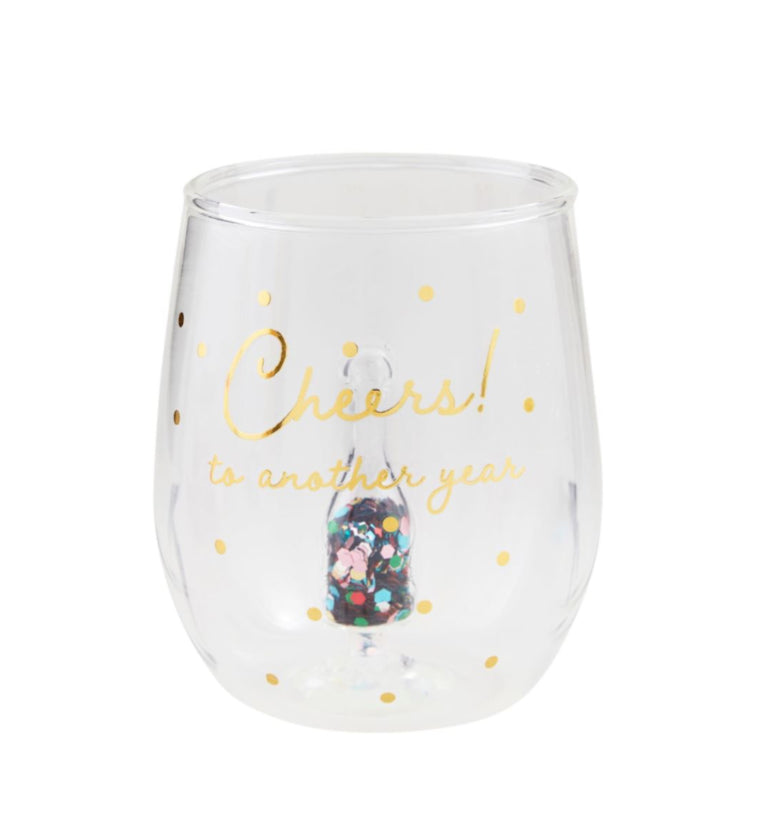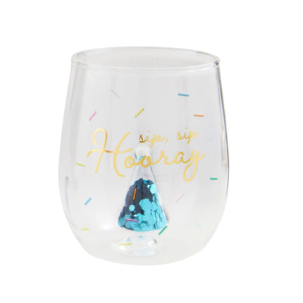 Foiled stemless wine glass with interior glitter glass figure Read more
