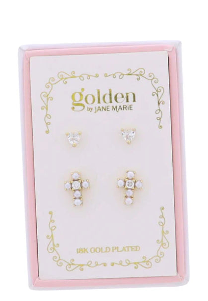 Reviews Kids 18K Gold Plated Set of 2 Heart & Pearl Cross Stud Earrings 0 out of 5 stars This product has no reviews yet Write a review Write a review