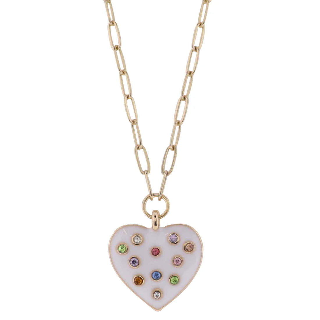 Kids Gold Paperlink Chain Necklace with White Enamel Heart with Multi Crystals Read more