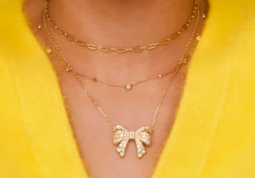 Which style are you bound to get tons of compliments wearing? The Krista Gold Bow Short Pendant Necklace in White... Read more