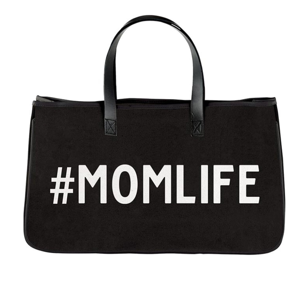 Black canvas tote with a cute phrase '#MomLife'. Perfect for carrying around your everyday baby essentials! size: 20"W x 11"H x... Read more