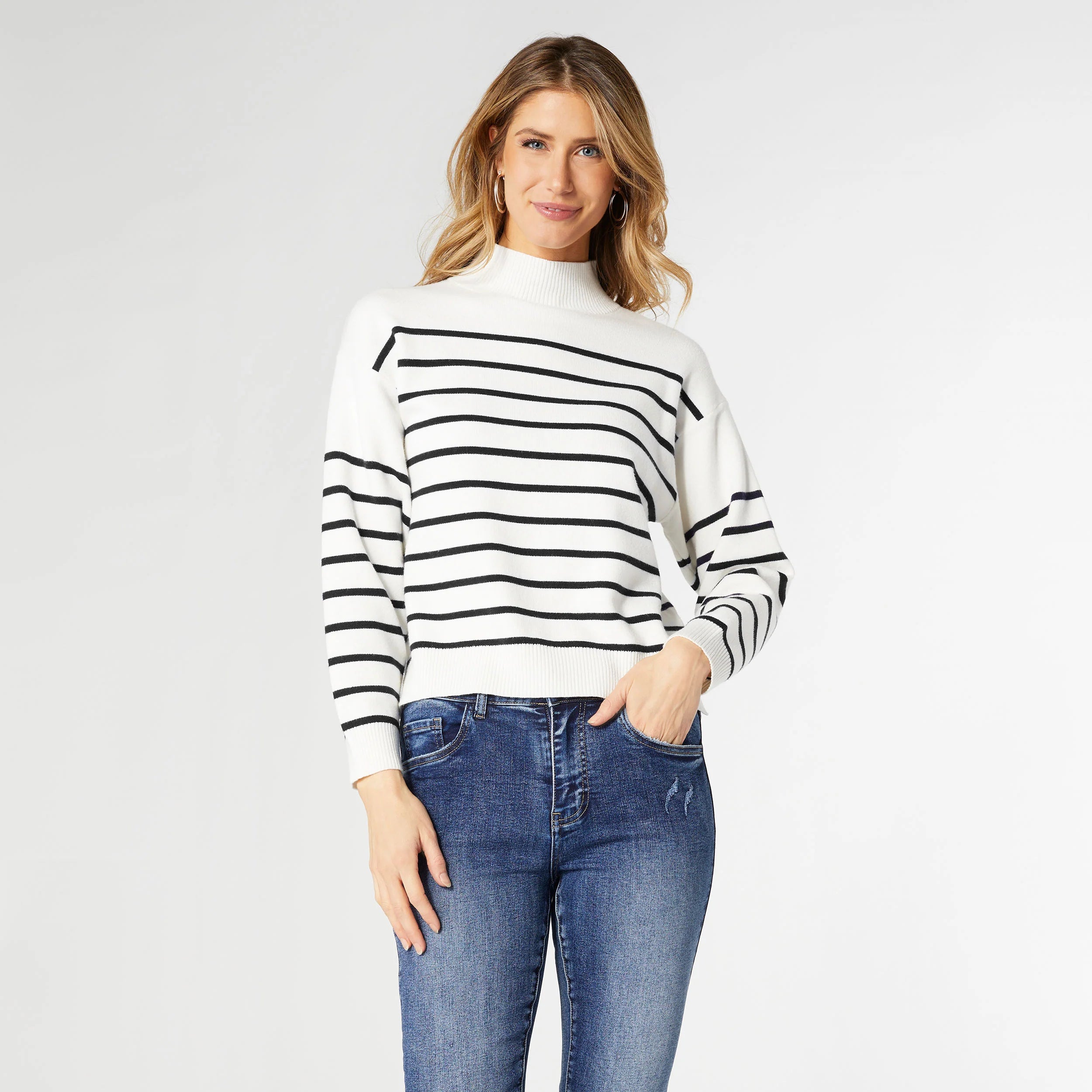 Neve Stripe Mock Neck Sweater