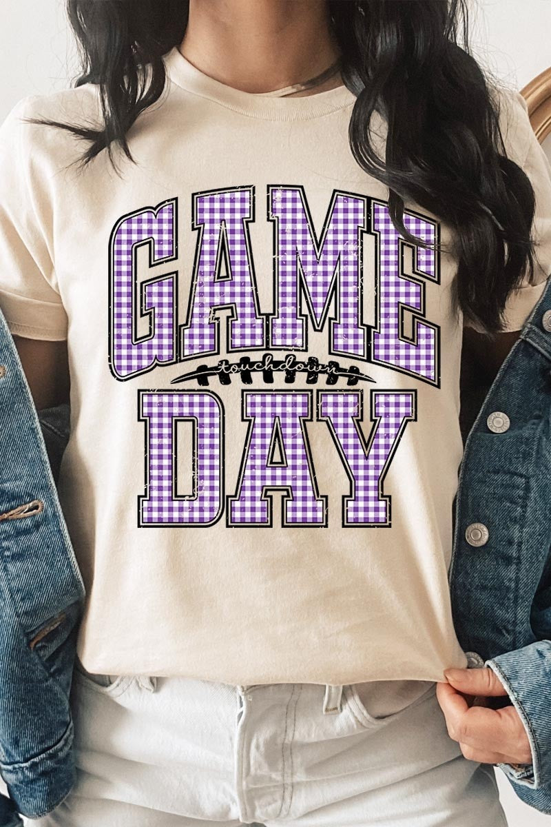 game day shirt, football tee, gingham game day top, tailgate shirt, varsity game day, Purple checkered tee, touchdown shirt, Purple... Read more