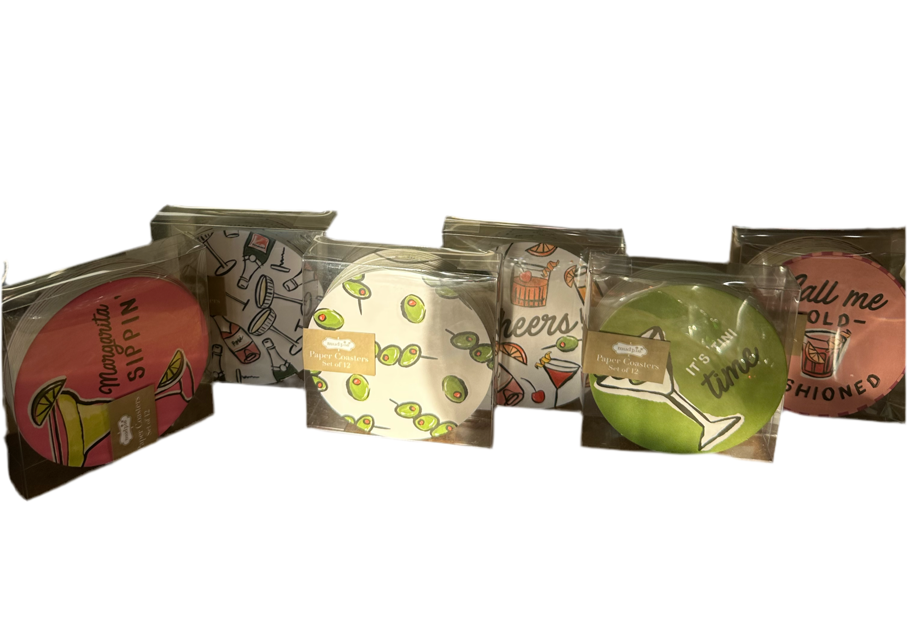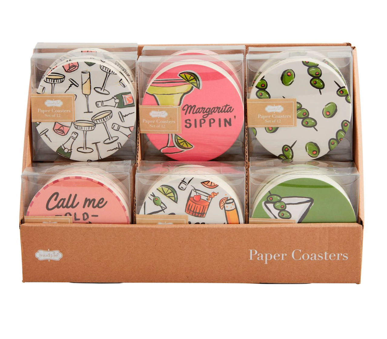Wine Paper Coasters VendorMudpie Share WhatsApp Deel Tweet Pin it Messenger Email Last stock! Product form Set of 12 paper coasters. Read more Name Free pickup in our shop(s) Margarita Tini Old Fashion Champagne Olive Cocktail Free pickup in our shop(s) 1 in stock $7.99 Quantity Add to cart This item is a recurring or deferred purchase. By continuing, I agree to the cancellation policy and authorize you to charge my payment method at the prices, frequency and dates listed on this page until my order is fulfilled or I cancel, if permitted. Shipped today? Order within: Jan 08, 2026 13:00:00 -0500